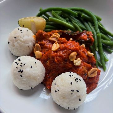 Add blended stew base and mix. Add white pepper, rosemary, brown sugar, peanut butter, paprika, ground iru and 1 tsp bouillon powder and stir well. Leave on medium-high heat (without a lid). Then: